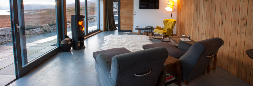 Hill Cottage at Croft 103, near Durness in Scotland, is perfectly designed, modern and luxurious. The views are spectacular, and can be enjoyed in comfort from your chaise longue in front of this lovely wood burning stove!