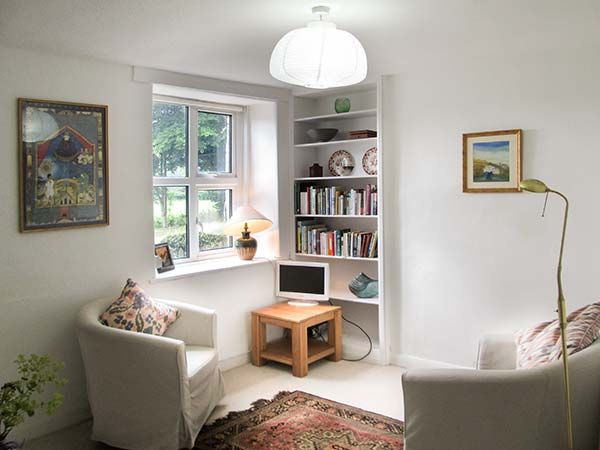 Outside, you can sit in the small enclosed garden or make use of the arts center gardens, with the local church as a pretty backdrop.